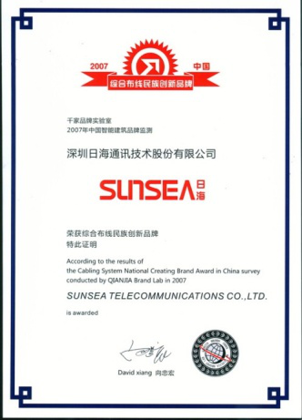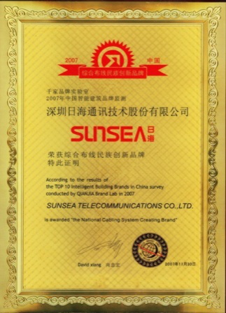 2007年11月29日~30日,ca888亚洲城公司智能综合布线受邀前往上海光大会展中心酒店,参加由千家网筹办的“2007年第八届中国国际建筑智能化峰会暨颁奖典礼”,获得了“布线民族创新品牌”特别奖项。