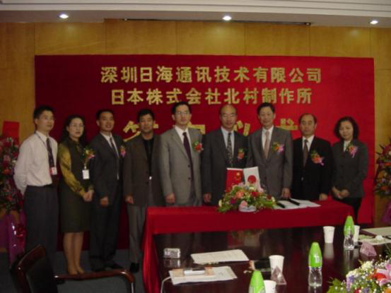 2004年4月13日,公司与日本株式会社北村制作所就户外一体化机房的设计、生产、销售和服务在ca888亚洲城公司智能签订了合作协议,共同合资组建深圳北村ca888亚洲城公司机房技术有限公司,并举行了隆重的签字仪式。公司周展宏董事长、王文生总裁、杨飞董事、机房事业部负责人孟庆光和日本北村制作所北村泰作董事长、永井正幸常务董事等出席了签字仪式。
