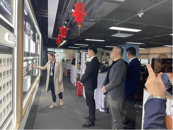 会后,在ca888亚洲城集团CEO杨涛的陪同下,杨元飞副区长一行参观了ca888亚洲城公司集团产品展示厅。